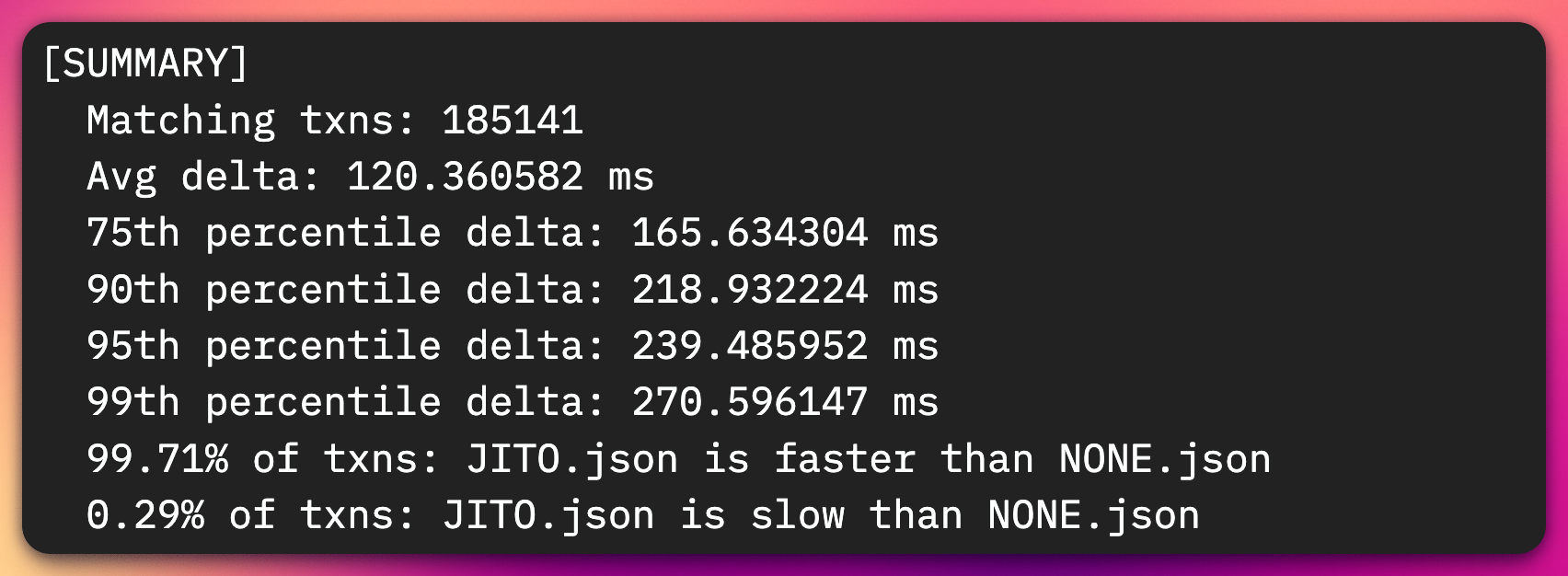 RPC Fast published numbers on Jito ShredStream: transactions arrive ~120.36 ms earlier on average, with a 99th percentile edge of 270.6 ms across 185,141 matched transactions. In a quiet network, that’s trivia. Under load, that’s the difference between first and forgotten.